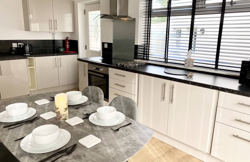 Modern facilities and furnishing throughout the property. Fibre WIFI, fully equiped modern kitchen with washing machine, tumble dryer , Nespresso coffee machine. Within the upstairs bedroom is a king size and single bed with designer beddings and mattress - Usb and wireless phone charging at the bedside. A dressing table with a professional use hairdryer. Air conditioning unit and a build in wardrobe. Although we do not supply a cot you are very welcome to bring your own travel cot at no extra charge. There is also a fold away bed that can be used for an additional charge of £15 per night on request that will sleep an extra person . Within the lounge area is a luxury leather sofa, electric reclining chair with USB charge point and a smart TV.