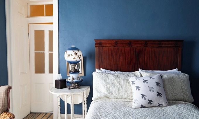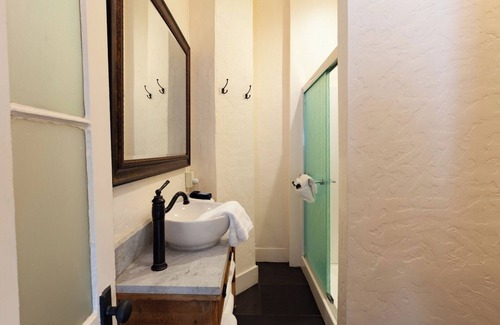 Historic St. James room with en suite bathroom. In keeping with the time period, there are no phones or televisions. Windows remain open, allowing the building to use its original 1800s-style AC. Guests stay comfortable with cool night breezes and in-room fans. Ground floor room. Each room is well-appointed, featuring charming historical details that reflect the inn’s rich past. *Sorry, no pets allowed.