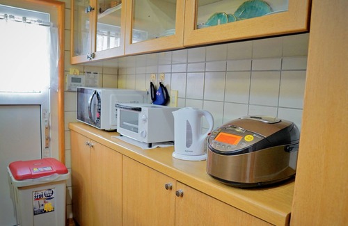 As you settle into this 5-bedroom, 1-bathroom rental, you'll find a BBQ grill and air conditioning. Bathroom amenities include a hair dryer, towels, and toilet paper. The kitchen is equipped with an oven, a stovetop, and a refrigerator, as well as a coffee maker, an electric kettle, and an ice maker. And there's access to laundry facilities, so you can even pack a bit lighter. Other amenities include bed sheets, an ironing board, and heating.