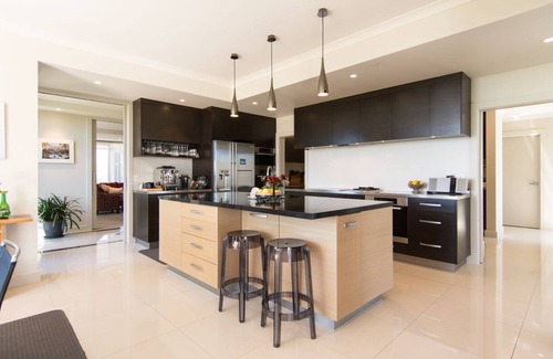 It is a unique property offering luxury accommodation for up to 6 guests in 3 luxury suites. Each suite has their own ensuite, private deck (with breathtaking views), luxury toiletries and a stylish, contemporary decor. The home also has a 3 lounge and 2 dining areas, with numerous relaxing spots outdoors, a library and locally commissioned and New Zealand art is a prominent feature throughout.