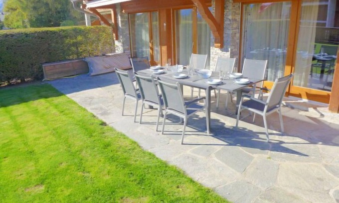 "Antares R05", 5-room apartment 140 m2, on the upper ground floor. Comfortable and wooden furniture furnishings: large living/dining room with cable TV (flat screen), radio and electric shutters. Exit to the terrace. 1 room with 1 double bed (2 x 80 cm, length 200 cm), bath/WC, cable TV and electric shutters. 1 room with 1 double bed (2 x 80 cm, length 200 cm), cable TV and electric shutters. Exit to the terrace. 1 room with 1 double bed (2 x 80 cm, length 200 cm), cable TV and electric shutters. Exit to the terrace. 1 room, without window with 1 double wall-trunk bed (2 x 80 cm, length 200 cm). Open kitchen (oven, dishwasher, 4 ceramic glass hob hotplates, toaster, kettle, microwave, electric coffee machine, Capsules for coffee machine (Nespresso) extra, raclette grill, fondue Set (chinoise, cheese)). Bath/WC, shower/WC. Floor heating. Large terrace 30 m2, south facing position. Terrace furniture. View of the mountains. Facilities: iron, hair dryer. Internet (WiFi, free). Garage space n 8 (1 car), height 220 cm, width 370 cm. Please note: non-smokers only. Maximum 2 pets/ dogs allowed.