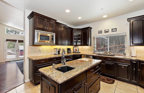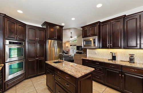 ✓ Fully Stocked Gourmet Kitchen w/ Granite Counters, Stainless Steel Appliances, Coffee Maker & Double Ovens