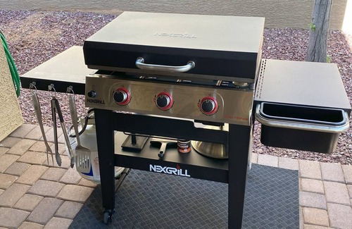 Great family location with many amenities. Large 3 bedroom home with dining room, large open family room, and a large fully equipped kitchen for all your cooking needs. pleasant relaxing back yard with covered patio, seating area and new gas griddle. Access to pool and parks.