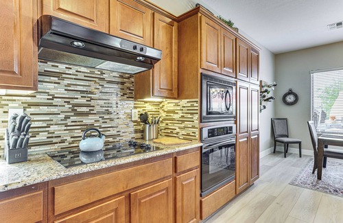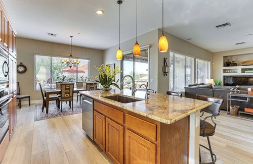 Add some luxury to your next desert vacation when you stay at 'Anthem Oasis,' a 3-bedroom, 2.5-bath vacation rental! Situated on the 10th hole of the Persimmon Golf Course, this home boasts panoramic mountain views and wide-open spaces. You'll love spending the days in the backyard featuring a private pool, brand new hot tub, and an outdoor kiva fireplace. Whether you choose to golf at Dove Valley, shop at the Outlets at Anthem, or go on a scenic hike, this home will be waiting for your return!
