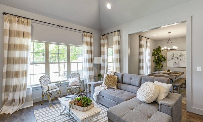 The well-equipped kitchen makes meal prep a breeze, and the dining area offers plenty of seating, with additional space at the kitchen island or on the back porch. Stay connected with WiFi and enjoy entertainment on the smart TV—simply log into your favorite streaming service.