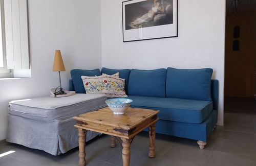 The lodge is a self-contained part of a family house built by Christos and Rania, who have lived in Sifnos for 20 years and who are always happy to share their knowledge of the island. Located on a terraced hill accessed by an unsurfaced road, the house is surrounded by olive and fig trees, vegetable gardens, wild plants and aromatic herbs. It is also close to a network of ancient footpaths - ideal for hikers and nature-lovers. There is a bus stop 6 minutes walk down the hill, and the stunning beaches of Chrisopigi, Platys Yalos and Faros as well as the shops, restaurants and bars of Apollonia and Artemonas are 5 to 10 min drive away.