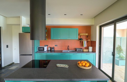 This unique spacious and colorful apartment is situated in a large land with a swimming pool and an olive grove, by the river Alfeios, only 8 km away by car and within walking distance from the Ancient site of Olympia. In a very calm and peaceful environment away from the crowds, it is a newly renovated apartment shared with other unique apartments in one large two story country villa. It feels like a country home rather than an apartment.