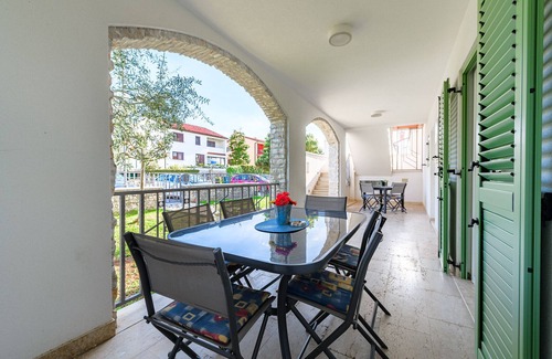 Apartment Inteuro, a charming 4-bedroom, 3-bathroom apartment on the ground floor of the villa is situated in Porec, Novo Naselje region.