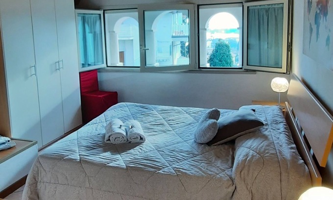 The apartment is equipped with sheets, towels, tablecloths, TV, hairdryer, toast bread, internet wi fi, washing machine, iron, oven, dishes, pots etc ... At about 500 meters you can use the private swimming pool and tennis court in Via San Benedetto 195. (Air conditioning in the room for a fee)