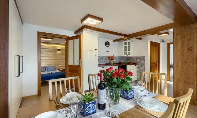 Best-rates for the Apartament Uroczy Zakątek starts from $60 per night with includes Balcony/Terrace, Breakfast, Parking, Pet Friendly, Designated Smoking Area, View, Sports/Activities, Barbecue/Outdoor Cooking, Internet, Wellness Facilities, Spa, Fireplace/Heating, Child Friendly, Security/Safety, Guest Services with all other amenities. Perfect for Weddings is committed to ensuring every guest experiences a comfortable and extraordinary stay, whether planning a romantic getaway, a honeymoon, a pet-friendly stay, or celebrating with the entire wedding party.