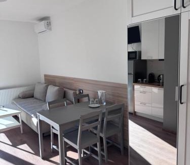 Apartament w Dolinie Sanu Lesko features air-conditioned accommodations in Lesko. Free Wifi is available throughout the property and private parking is available on site. The apartment also offers facilities for disabled guests. The apartment provides guests with a terrace, quiet street views, a seating area, cable flat-screen TV, a fully equipped kitchen with a dishwasher and a microwave, and a private bathroom with walk-in shower and free toiletries. A fridge, a stovetop, and kitchenware are also provided, as well as a coffee machine and a kettle. At the apartment complex, each unit is fitted with bed linen and towels. As an added convenience, Apartament w Dolinie Sanu Lesko offers packed lunches for guests to bring on excursions and other trips off-property. For guests with children, the accommodation provides outdoor play equipment. Skiing and cycling can be enjoyed nearby, while a ski equipment rental service and ski-to-door access are also available on-site. Skansen Sanok is 10 miles from Apartament w Dolinie Sanu Lesko, while Zdzislaw Beksinski Gallery is 10 miles from the property. Rzeszów-Jasionka Airport is 61 miles away.