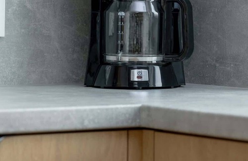 Induction hob, fridge with freezer, microwave, electric kettle, coffee machine (pour-over), kitchenware