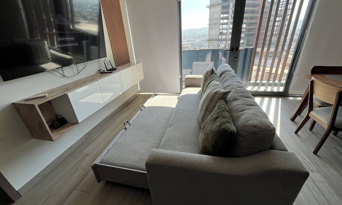Escápate a este tranquilo refugio de 2 habitaciones en Tijuana. Con una cama king y una cama individual, este espacio es perfecto para grupos pequeños o familias. Ubicado perfectamente a un costado de Plaza Península. Este acogedor apartamento cuenta con una sala de estar con sofá cama, ideal para relajarse. Cuenta con A/C, WIFI, acceso a las instalaciones como piscina, gimnasio, área de yoga, sala de entretenimiento, espacios para disfrutar con amistades. Además cuenta con espacio privado de estacionamiento. El acceso es totalmente privado. Este departamento es perfecto para un grupo de hasta 6 personas.