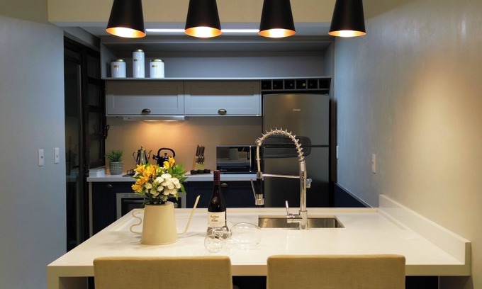 While you're here, you can enjoy all the comforts of home and more, including WiFi and a bidet, as well as air conditioning and an ironing board. Other amenities include laundry facilities, towels, soap, and toilet paper.