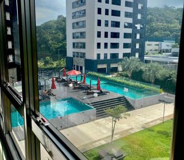 Yes, this Apartamento praia brava has a swimming pool. Check the Facility Overview section for details about the pool and other available facilities.