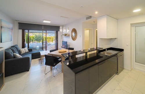 The accommodation is equipped with the following items: lift, garden, garden furniture, fenced garden, 20 m² terrace, washing machine, iron, internet (Wi-Fi), hair dryer, childrens area, central heating, air conditioning throughout the house, communal swimming pool, open-air parking near the building, 1 TV, tv satellite (Languages: Spanish).