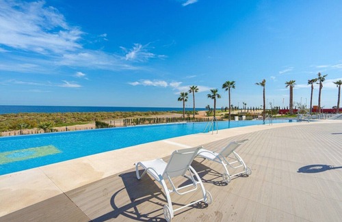 Modern apartment in San Juan de los Terreros, Andalusia, Spain with communal pool for 6 persons. The apartment is situated close to restaurants and bars and supermarkets and at 50 m from the beach.