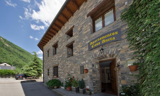 Set 6.2 mi from Ordesa y Monte Perdido National Park, Apartamentos Casa Aneta offers accommodations in the small village of Sarvisé. The rustic-style apartments feature exposed-stone walls and offer free Wi-Fi. Each apartment comes with heating and wooden floors. The living room has a sofa and TV. The kitchenette is equipped with a ceramic hob, oven, and microwave. A restaurant under the same management is set next to the apartments. Guests can also find a children’s playground less than 328 feet away. The towns of Sabiñánigo and Biescas are within 19 mi of the property. Guests can also find the ski resorts of Panticosa and Formigal within 50 minutes’ drive.