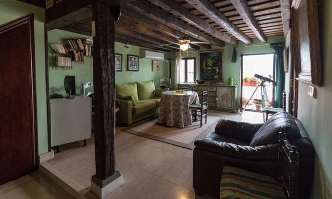 The apartment is located in an old convent house from the 16th century, and the rooms coincide with the cells where the monks lived. You can still feel the peace and the reflective atmosphere that can be breathed in every corner of the renovated space.