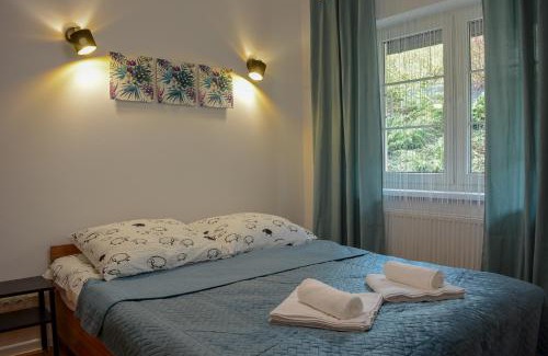 Apartamenty Asturia offers accommodations in Rymanów-Zdrój, 19 miles from Skansen Sanok and 11 miles from Museum of Oil and Gas Industry Foundation. There's a private entrance at the apartment for the convenience of those who stay. The apartment also features free Wifi, free private parking, and facilities for disabled guests. Each unit features a terrace, a fully equipped kitchenette with a dishwasher, a dining area, and a flat-screen TV, while the private bathroom includes a shower and a hair dryer. An oven, a microwave, and toaster are also available, as well as a coffee machine and a kettle. At the apartment complex, each unit includes bed linen and towels. BWA Art Gallery is 12 miles from the apartment, while Zdzislaw Beksinski Gallery is 19 miles from the property. Rzeszów-Jasionka Airport is 55 miles away.
