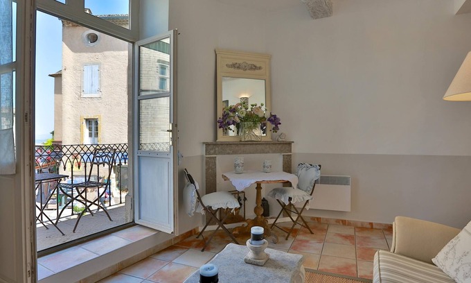 Inside Gordes is a guest apartment located in the heart of the Luberon Park, in the beautiful village of Gordes classified as "the most beautiful villages in France". Only half an hour from Avignon TGV station, and 50 minutes from Marseille airport. We invite you to join us for an unforgettable and authentic stay. The apartment has a privileged location, on the castle square ... All shops are within walking distance (bakery, supermarket, tobacco, post office, doctor and pharmacy, coffee shops, art galleries and shops of course: -) The mild Provencal climate, the cultural heritage, the authenticity of nature, local products and craftsmanship make the Luberon an exceptional place. We offer Inside Gordes for rent for 2 nights or weekly. It is located on the 4th floor without elevator of a building of the 12th century (old rampart of the village) It has an authentic decoration, refined and a great comfort, inspired of the style of Provence. It is composed of a room benefiting from an exceptional sight on the valley and a room of water. The TV lounge overlooks the village square overlooking the castle of Gordes. A terrace and a kitchenette complete the set. A unique location in a mythical place, proximity to shops, the services we offer, make this apartment, the ideal combination for an unforgettable stay in Provence, in the Luberon. Free wi-fi