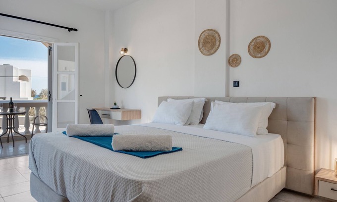 Apartment '08 Double room Perivolos beach' with Mountain View and Air Conditioning is located in Agios Georgios. Apartment '08 Double room Perivolos beach' with Mountain View and Air Conditioning provides accommodation, featuring Balcony/Terrace, Oceanfront, Security/Safety, among other amenities. This House features Balcony/Terrace, Oceanfront, Security/Safety, to make your stay a comfortable one.
