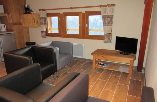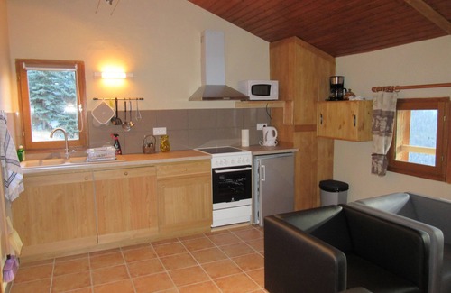 40m² apartment located in a chalet with independent access. west end of the village. Ski lift start. 1 bedroom (160x200 bed). Sleeping area with 2 bunk beds. SDB with shower and WC. Kitchen area (oven), fridge (freezer), dishwasher, microwave. TV. Wireless. sheets and towels included.