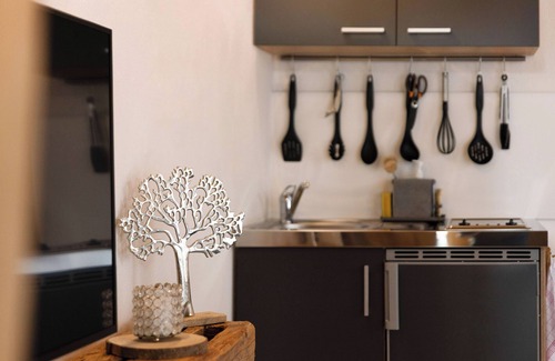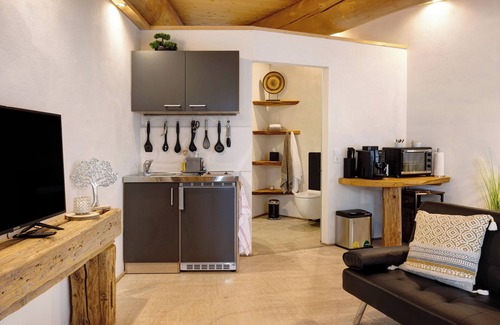 The holiday apartment -2-die Zwei, Studio 35qm with step-free access and interior is located in Rosenfeld and is the ideal accommodation for a relaxing getaway. The 35 m² property consists of a living room with a sofa bed for one person, a fully-equipped kitchen, 1 bedroom and 1 bathroom and can therefore accommodate 3 people. Additional amenities include high-speed Wi-Fi (suitable for video calls) as well as a smart TV with streaming services. This vacation rental features a private covered terrace for relaxing evenings.