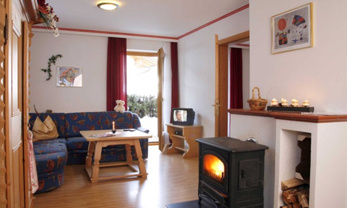 We have three spacious apartments with balcony or terrace. Our apartments are about 50 square meters and for max. 4 people designed. The apartments are equipped with shower and toilet, satellite TV, safe, balcony or terrace, bedroom, living area and fully equipped kitchen. Sheets, towels and cooking utensils are also provided. In addition, you can easily use our »bakery service«, which delivers the rolls for breakfast directly in our house. All rooms have a beautiful view of the castle Heinfels. In the living area you can make yourself comfortable in the stove and review the day.
