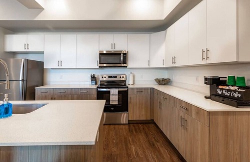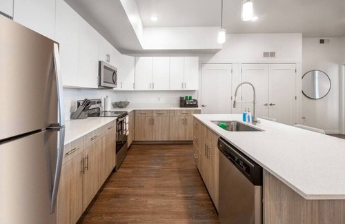 Looking for a luxury-style apartment for your vacation? You just found it! Beautiful 2 bedroom 2 bathroom rental with stocked kitchen for cooking, comfortable and luxury style amenities inside, and fantastic community amenities for work and play! Be ready to enjoy a nice soak in our hot tub by the outdoor fireplace, or get your sweat on in our state-of-the-art gym. You will have a blast and be able to relax in style.