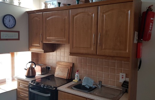 The open-plan kitchen comes fully-equipped with everything you need to cook a delicious meal. There’s an oven with electric hobs, microwave, fridge, kettle and toaster.
