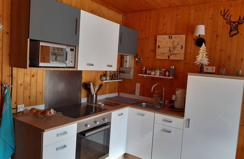 An equipped kitchen: oven, hob, fridge, microwave and Senseo coffee maker, A ski locker.