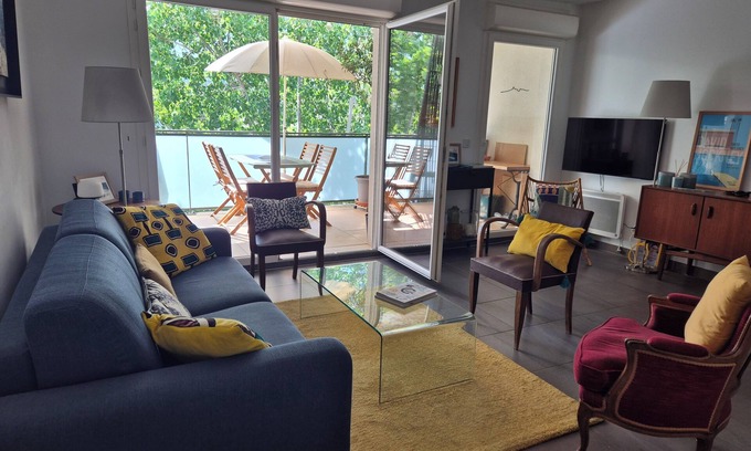 - Superbe appart 3 p, 10 mn de la plage avec piscine et parking