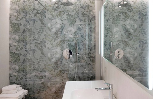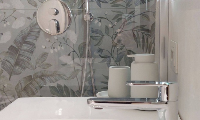 A suite environment overlooking the historic buildings. RELAXING, MODERN DETAILS and sophisticated DESIGN. Entire apartment, approx. 40 sqm, consisting of living room with sofa bed, 50’TV, kitchen with microwave oven, coffee machine with capsules, kettle, induction hob and refrigerator, hallway and large bathroom. The double room has a direct view of Viale Papa Giovanni XXIII with recently renovated historic buildings in front. The sleeping area is divided from the living area by a double sliding door that allows you to consider a single suite model environment leaving the doors open, or on the contrary, allows you to have complete privacy by closing the slides. The green tones used for the furniture and painting, in addition to the furniture and the coating of the large bathroom of this apartment are extremely modern and elegant. The replacement of the windows allows the complete soundproofing of the rooms.