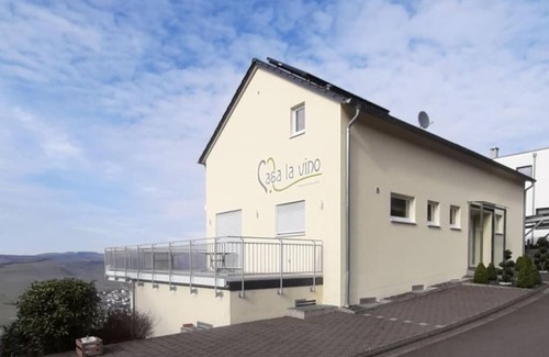 Uralub with the best views ...... THAT is exactly what is possible in our new guesthouse Casa la vino (Zummethöhe) in every respect. The breathtaking view of the Mosel loop and the taste of good Trittenheimer wine are the guarantee for an unforgettable holiday. The ideal distraction for anyone who is looking for peace and distance from everyday life or just want to spend a relaxing holiday. Five modern apartments offer a home-like atmosphere. Each apartment has a balcony overlooking the Mosel loop, kitchen, satellite TV and bathroom with shower / WC. On request you can have breakfast in our winery in Trittenheim. No matter whether you take a boat trip to Bernkastel or a day trip to Trier, a hike through the vineyards or a bike ride along the Mosel - you can hardly get any closer to the typical Mosel flair. In our vineyard in Trittenheim, 2.5 km away, after a restful night in our cozy double room, you can start the day well-rested after a delicious breakfast. Cyclists and hikers are welcome. Highly recommended is a wine tasting. Find your favorite from the wide range of our wines. There is guaranteed the right tropical for every taste. We look forward to you!