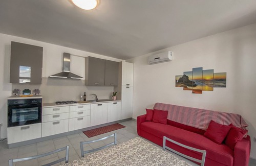The apartment has a balcony in front and behind, a flat roof, washing machine, satellite TV, n. 2 air conditioners (sleeping and living areas), fitted kitchen equipped with oven, fridge / freezer and provisions.