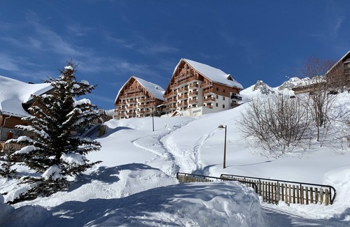 This is located in the residence "Les balcons du soleil 1" and enjoys a southern exposure with breathtaking panoramic views of the mountain range and the ski area. It is located in the upper part of the resort at 1650 m, in a very quiet environment, near the Mollaret chairlift, accessible on foot or free shuttle stop outside the residence. The shops are located 50m away. You will find a supermarket, a bakery, a press store, the ESF, the dairy cooperative, ski and hiking equipment rental stores, clothes, several restaurants ...