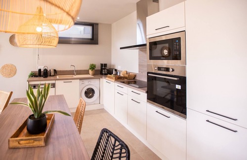 Close to the ocean, this pet-friendly apartment brings it all within reach. Thanks to the convenient covered onsite parking, you can either leave your vehicle behind and enjoy a short 5-minute walk to Plage des Gireliers, or easily tackle the quick 7-minute drive to Nartelle Beach.