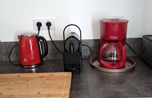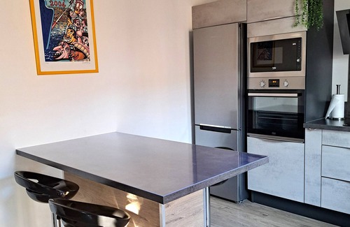 A living room, a dining area, and air conditioning are featured at this 2-bedroom, 1-bathroom rental. Enjoy the free WiFi and TV. The kitchen is equipped with an oven, a stovetop, and a refrigerator, as well as a coffee maker, an electric kettle, and a microwave. And thanks to the washer and dryer, you'll even be able to travel light. Other amenities include an ironing board, heating, a desk chair, and a dining table.
