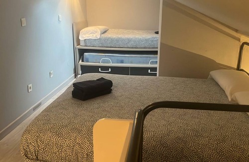 Cozy apartment at the foot of the Candanchú slopes, perfect for snow lovers. Distributed on two floors with two separate rooms, with capacity for up to 5 people, a full bathroom and a living room with a fully equipped kitchenette. The accommodation has bed linen and towels. A parking space is included in the price.