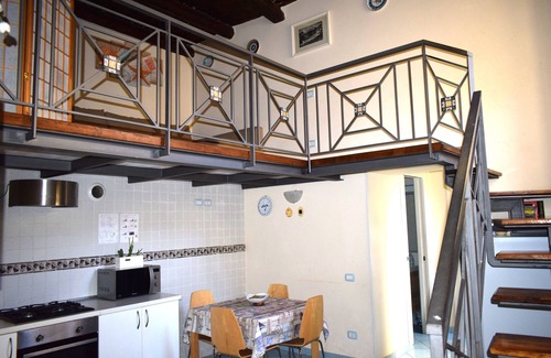 The 45 sqm apartment is located on the third floor of a historic building from the 1700s built in the center of the ancient fishing village in what is today the main square of Marina di Vietri. It is 50 meters from the sea and consists of a bathroom with shower, an open mezzanine with a double sofa bed, a bedroom with a king size double bed, a living room with kitchenette complete with a large table with chairs and a small terrace. It is equipped with all comforts such as 24/24 wireless internet connection and air conditioning. The kitchen is fully equipped with dishes, pots, glasses, cutlery, oven, washing machine and fridge.