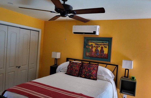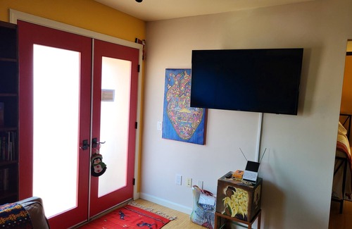 Brightly decorated unit in Mexican motif, our son moved out of the country. He picked tile, colors and there is plenty of his personal art remaining. Quiet place as unit is above garage and there are no other tall buildings near and windows have awnings and triple pane glass. We are close the DTLA, Cal State LA and the Health Science Campus of USC. Great transportation within walking distance. Beautifully kept gardens with fruit trees. There are areas where one can sit an read quietly, throughout the property. Apartment is fully furnished; and kitchen. Check out our mural on the back wall of the property. Commissioned to a local artist, Teresa Armas.