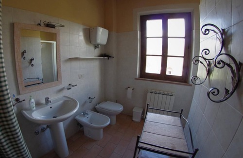 Farmhouse apartment deep in the countryside with private pool, 7 km far away from Perugia. It consists of an open space living room with fully equipped kitchen, a double sofa bed, one double bedroom, one single or double bedroom, a bathroom with shower, a private porch equipped for outdoor meals. Is possible to add single bed or baby bed. Dogs are welcome, cats are not allowed.