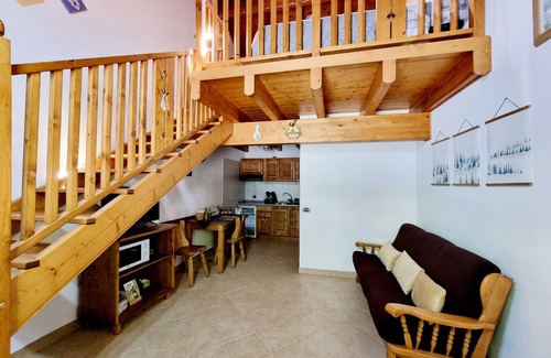well-equipped kitchen, and bathroom with shower, a bedroom on the wooden loft with