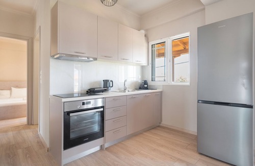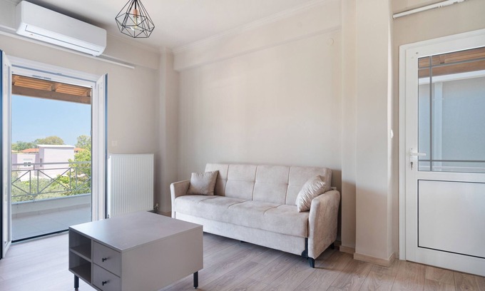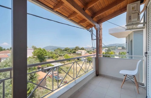 The holiday apartment is located in Lefkada and offers beautiful views of the Ionian Sea. The property, 68 sq m, consists of a living room with a sofa bed for 1 person, a kitchen, 3 bedrooms, and 1 bathroom, accommodating up to 7 guests. Additional amenities include high-speed Wi-Fi (suitable for video calls), TV, air conditioning, and a washing machine. You have a private outdoor area with 3 covered terraces and 3 balconies. The apartment is conveniently located just 200 meters from the beach, and public transport is nearby. Parking is available on the property. Pets, smoking, and events are not allowed.