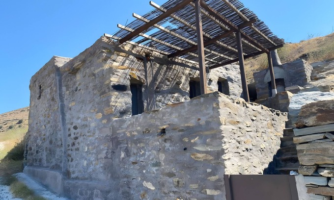 Alonaki Tinos Rental Cottage House is a beautifully restored traditional stone property with a terrace, located in the picturesque village of Krokos. Once a 100-year-old stable, it has been transformed into a minimalist design masterpiece, offering a serene and unique monastic retreat.