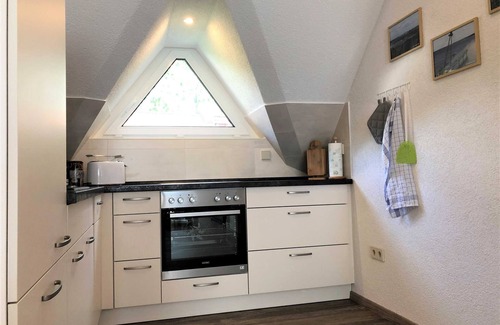 The apartment is modern and functional. It lies in the 1. Floor of the house and is reached via an external staircase (weather protected). In the apartment, the guest will find a separate bedroom, 1 combined living - bedroom with TV, 1 kitchen (fully equipped with oven, electric stove, dishwasher and refrigerator and coffee machine, kettle and toaster), which is open to the living room and a bathroom with bath and shower / WC.