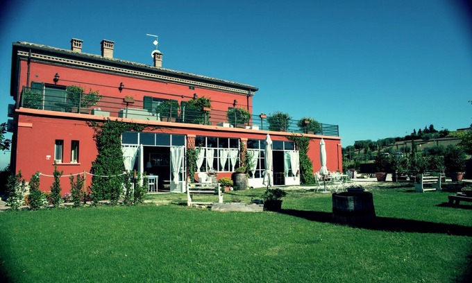 Set amidst the hills of Passano di Coriano, this charming first-floor apartment offers a serene retreat in the heart of the Emilia-Romagna countryside. The apartment is part of an authentic agriturismo, surrounded by lush vineyards and scenic landscapes. Guests can unwind in the shared garden, soak up the sun on the communal roof terrace, or take a refreshing dip in the shared swimming pool. The tranquil setting, along with the comfort of air conditioning, creates an ideal space for rest and relaxation—perfect for couples, small families, or solo travelers looking to disconnect from daily life. While peaceful and private, the location offers great proximity to top local attractions. Just 9 km away, Riccione invites you to its golden beaches and lively Adriatic coast. Families will love visiting Aquafan and Oltremare, both only 8 km away. Wine lovers can enjoy tastings right on-site, as the agriturismo produces its own local wine. For a cultural touch, the unique La Storia del Sic museum is just 190 meters away, while nature enthusiasts can visit the nearby Biological Valley delle Lepri park. Food lovers are in for a treat with numerous excellent dining options just a short drive away in Coriano. Try Locanda i Girasoli for refined regional cuisine or Trattoria il Mulino for hearty local dishes in a rustic setting. For something more casual, Pizzeria Grazie Marco is perfect for a relaxed evening. Don’t miss the chance to pair your meal with local wines produced right on the estate—an authentic taste of the region, enjoyed just steps from your accommodation.