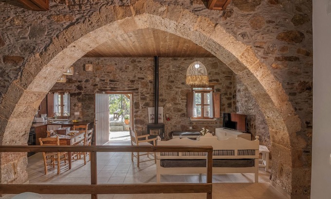 Anaxagoras is the ground floor of the Seli village house. The apartment consists of an open-plan residential complex and is characterized by an imposing original Venetian arch, which separates the kitchen and living area from sleeping. It has direct access to your garden with barbecue and large dining table with sea view. Here you can inhale a touch of Cretan history in a unique and comfortable atmosphere. Furthermore Apartment Anaxagoras offers you all modern amenities you are wishing for a relaxing vacation like a washing machine, satellite TV and of course WIFI.
