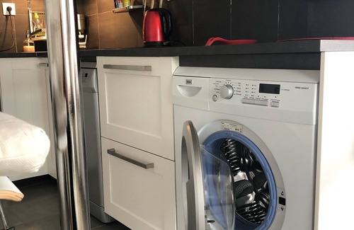 The kitchen is equipped with everything needed including dishwasher and washing machine. You can also enjoy the garden in good weather for a barbecue.
